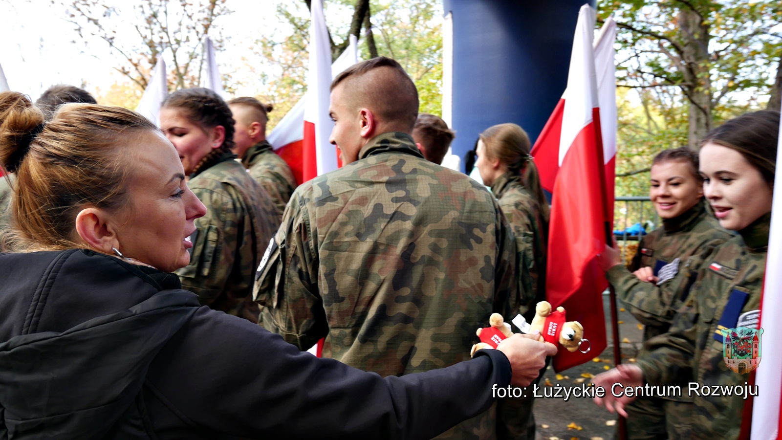 W tym roku, z racji setnej rocznicy odzyskania przez Polskę niepodległości w programie wydarzenia pojawiła się pewna nowość. Punktualnie o godz. 12.00 wystartował bieg/marsz dla rodzin z dziećmi w ramach „Lubań dla Niepodległej”. Maluszki dopiero co stawiające pierwsze kroki, jak również dojrzali lubanianie mający nie jeden kilometr za sobą z dumą i uśmiechem na ustach pokonywali kolejne metry dla uczczenia pamięci o tak niezwykłej karcie w historii naszego narodu. Na czele niepodległościowych biegaczy stanęli z flagami Polski wychowankowie klas proobronnych Zespołu Szkół Ponadgimanazjalnych im. Kombatantów Ziemi Lubańskiej pod opieką Elizy Sławińskiej. Tuż za nimi, w dłoniach pozostałych uczestników powiewały chorągiewki. Biało-czerwona kolumna, wśród której nie zabrakło Burmistrza Miasta Lubań, Arkadiusz Słowińskiego sunęła przez park, aż do mety, gdzie czekały pamiątkowe misie Lubię Lubań. Wszystkim spodobała się inicjatywa i ochoczo zapewniali, że za rok chętnie w podobny sposób uczciliby 101 rocznicę odzyskania niepodległości.