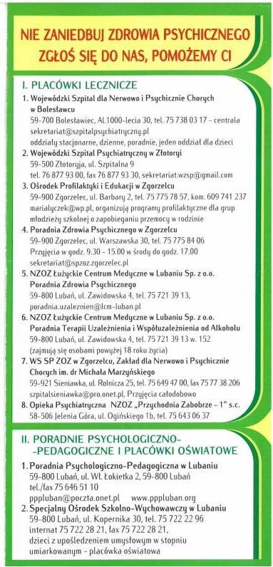 - Placówki lecznicze, poradnie psychologiczno-pedagogiczne, placówki oświatowe