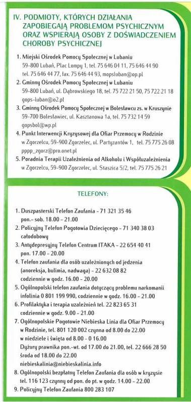 - Ogólnopolskie telefony informacyjno-interwencyjne oraz telefony zaufania i wsparcia
